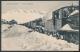 Finse station. Bergensbanen. Flott kort med nærbilde av tog hvor to lokomotiv må til for å slepe vognene. Artig. G.H No. 814. Postgått u/frimerke #