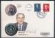 Kongelige myntbrev fra SMH i 3 stk perm m/kasett , flere brev med sølvmyter og 5 pounds mynter . Spennende samling med flere dubletter , befaring anbefales # 1500