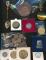 Rotelott med 2 Norske myntsett og 15 stk medajer i sølv og bronse , spennende .
