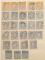 Tykk bunke med bruksmerker mest 5-20 øre men også noe annet. Ser ut som marginaldatoen er revet av på mange av de. Også en plansje med blokker av kronemerker med dato. (Stor bunke ark)