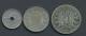 1 krone 1877 , 50 øre 1895 og 25 øre 1923 m/hull v.kv