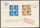 7/12-51 - 30 på 25 Haakon i 4-blokk på rekomandert brev. Hk 2000 for singel merke. #