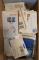 Kasse med brev fra mange land. Mange er montert opp på A4 plansjer. Bør vurderes.