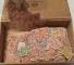 Sigareske med hundrevis av skilling- øremerker med større eller mindre feil. Studiemateriale.