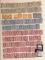Tykk bunke med bruksmerker mest 5-20 øre men også noe annet. Ser ut som marginaldatoen er revet av på mange av de. Også en plansje med blokker av kronemerker med dato. (Stor bunke ark)